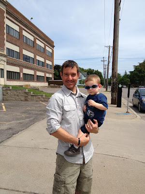 H. B. Fuller had their annual family picnic yesterday, so Sam and I went out to meet Mike in the afternoon. Sam had a great time dancing to the music, watching the balloon artist, and playing with the other kids on the "bouncy" train. Actually, he was having so much fun in the bouncy train that we had to lure him out with a cookie so we could go home.
